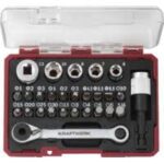 Drehmoment-Sticks aus legiertem Stahl für die Verwendung mit Druckluft- und Elektro-Schlagschraubern. Verhindert ein zu starkes Anziehen der Radmuttern, das zu Verformungen von Rädern,Mehr Infos - 1/4″ Bit Box mit mini Ratschenschlüssel, 27 tlg.