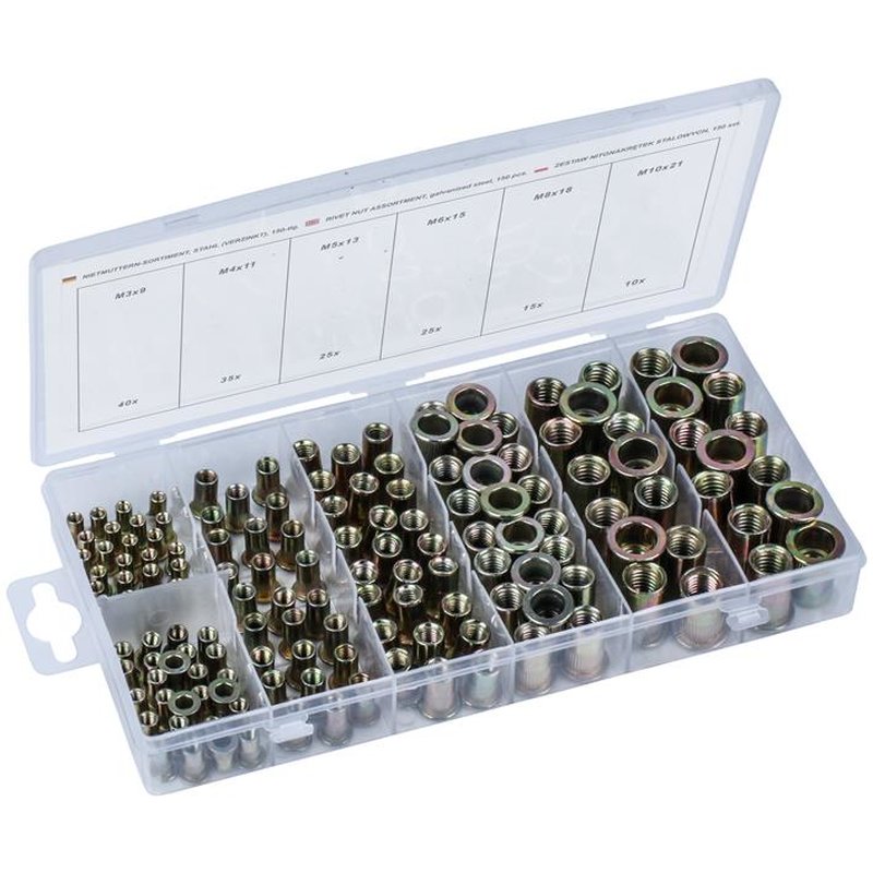 Nietmuttern -Sortiment, Stahl  (verzinkt), 150-teilig